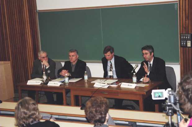 Lawrence Herman, Former Canadian Trade Representative to the International Trade Advisory Committee Task Force on Trade Policy; James McIlroy, President, Counsel of Public Policy, McIlroy & McIlroy; David Orchard; Robert Wisner, Litigation Practice Leader, Appleton & Associates LLP speak to The Twelth Annual Canadian International Law Students' Conference (CILSC) 2005, University of Toronto, February 26, 2005 |